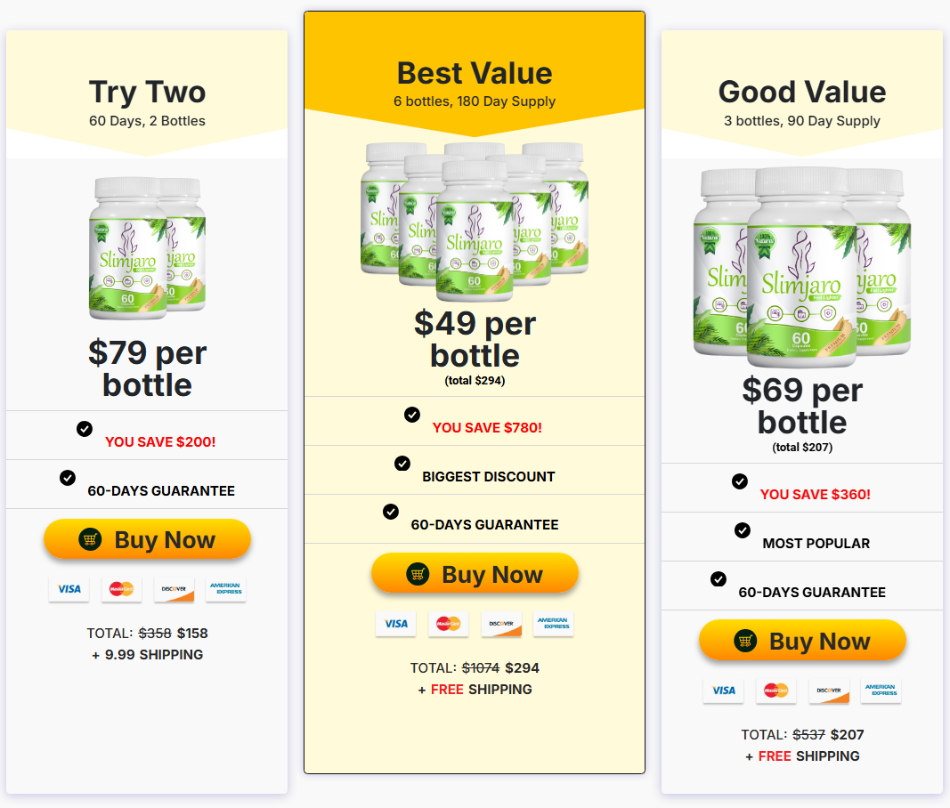 To guarantee you’re getting the authentic, clinically-formulated SlimJaro — along with the 60-day money-back guarantee — always order directly from the Official Website.
